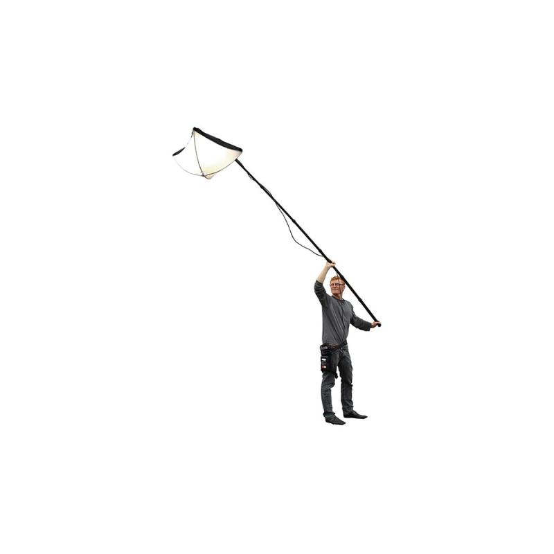Combined with a battery powered 1x1 led panel and a telescopic boom, you get a very portable and diffused source.
