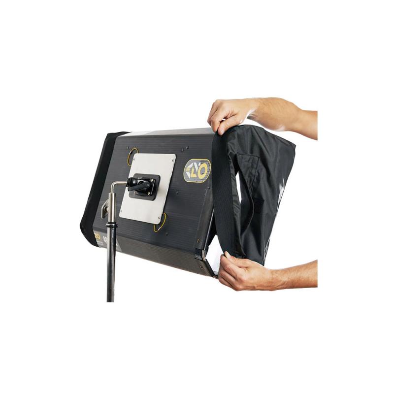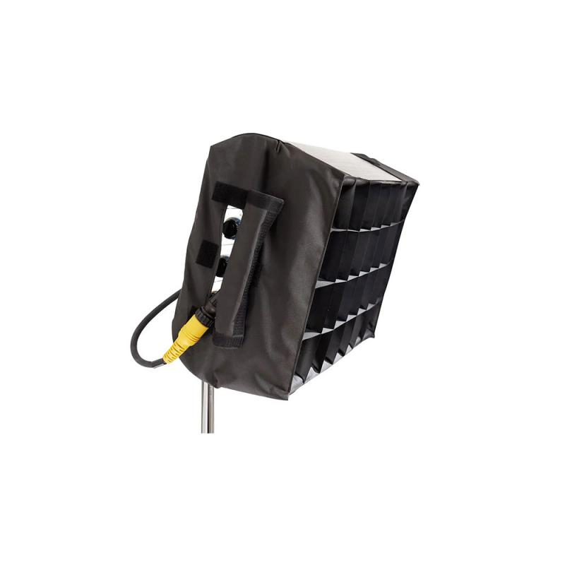 The DoPchoice Snapgrids produce 40 and 50-degree coverage and mount on any 4Bank Flo System. The built-in snapframe allows for fast set-up without the hassles of “belly sag” when your 4Bank is overhead in a horizontal position.They are constructed of pre-stretched fabric with a built-in stainless steel frame. Every Snapgrid comes with its own storage case and 2 side covers. They avoid the spill light to the side and can also be used without the snapgrid. The flexible ventilation flaps assures a good air circulation. No hassle with color shift of the tubes!