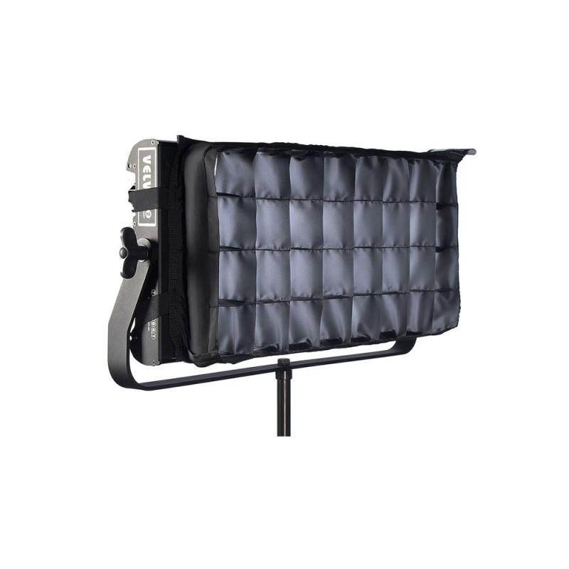 DoPchoice SnapGrids mount on the front of a SnapBag or a Frost frame to control the spread of the light. Taking full advantage of DoPchoice’s patented instant set-up and self-tightening internal SnapFrames, a SnapGrid practically snaps out of its compact pouch ready to easily attach onto the interior lip of most popular softboxes, or simply affixes via hefty elastic strap to the corners of a Frost frame and panel light.