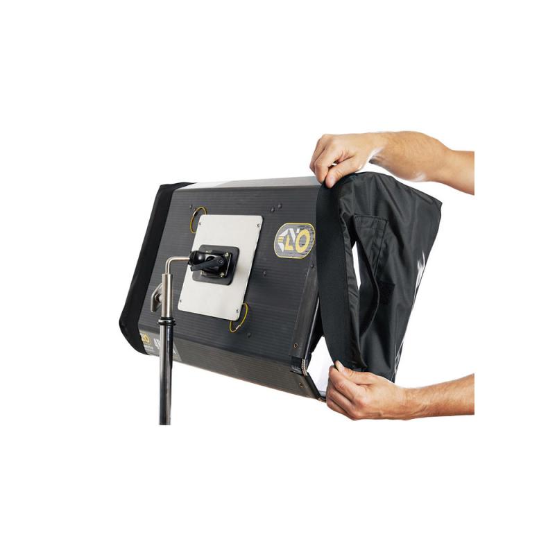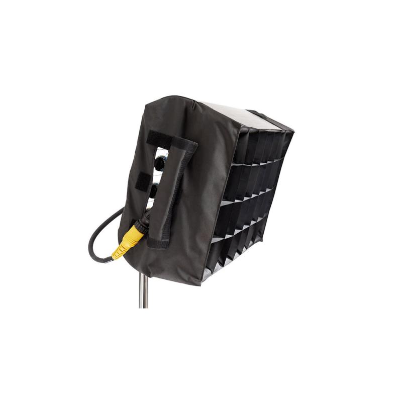 The DoPchoice Snapgrids produce 40 and 50-degree coverage and mount on any 4Bank Flo System. The built-in snapframe allows for fast set-up without the hassles of “belly sag” when your 4Bank is overhead in a horizontal position.They are constructed of pre-stretched fabric with a built-in stainless steel frame. Every Snapgrid comes with its own storage case and 2 side covers. They avoid the spill light to the side and can also be used without the snapgrid. The flexible ventilation flaps assures a good air circulation. No hassle with color shift of the tubes!