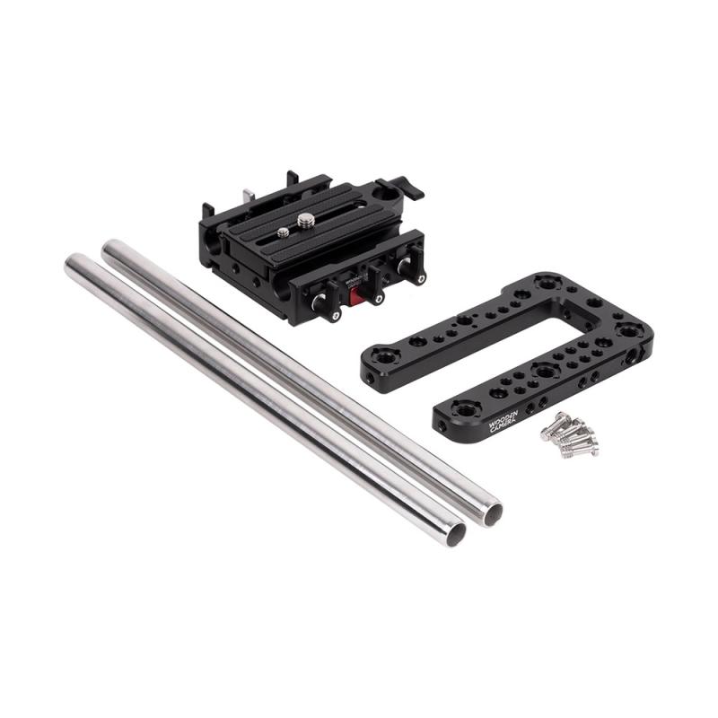 Sony FX6 Unified Accessory Kit (Base) is a professional camera support package designed for the Sony FX6 camera and utilizes the Wooden Camera Unified Baseplate System. The FX6 accessory package includes: Top Plate (Sony FX6), a top mounting camera cheeseplate for accessory attachment, Unified Baseplate (Sony FX6), a quick release, camera baseplate for holding the two 15mm Rod (12") at the correct lens height.