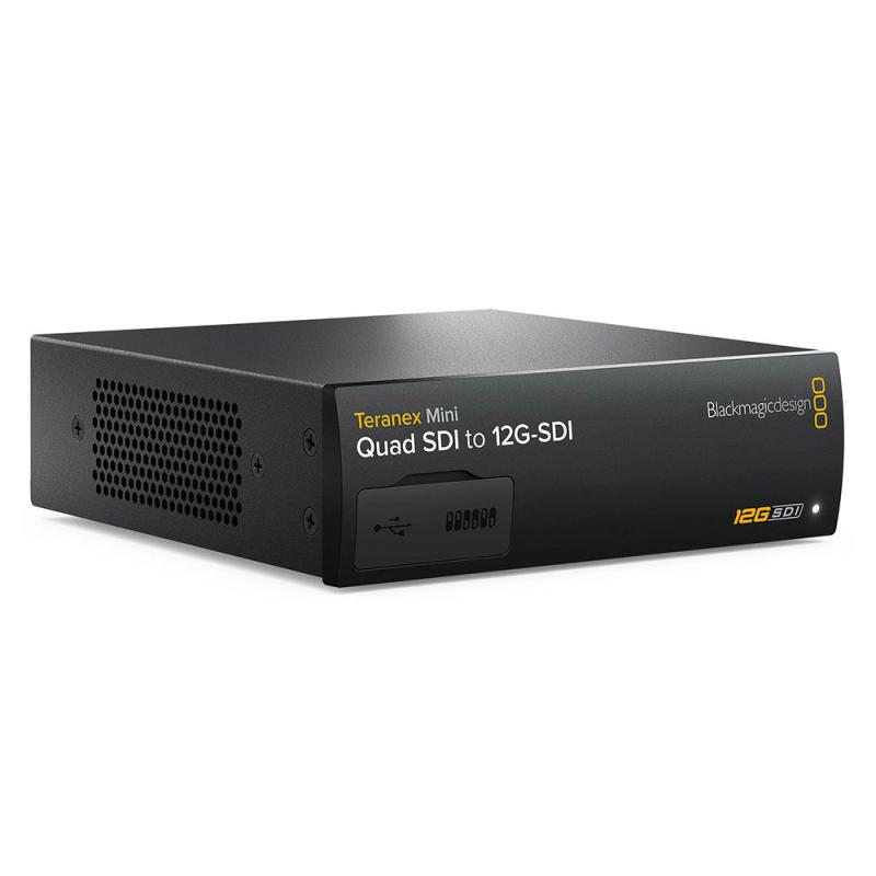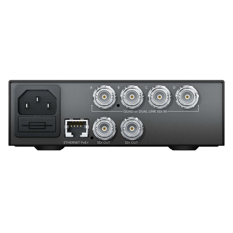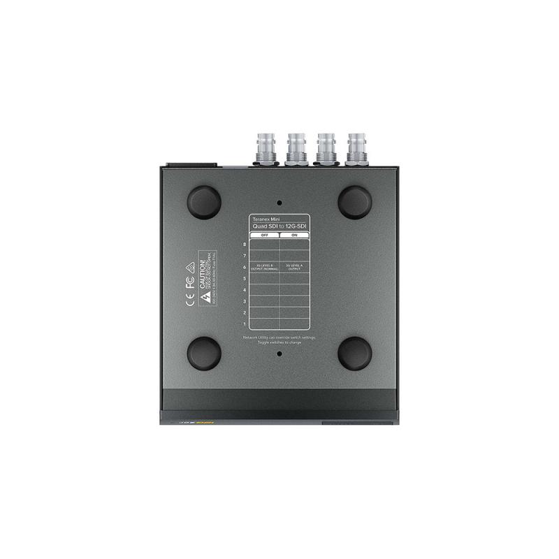Connect Quad-Link SDI sources to 12G-SDI equipment with the Blackmagic Design Teranex Mini Quad SDI to SDI 12G Converter. Housed in a low-profile sleek black enclosure, this Teranex Mini Converter fits in studio and post-production workflows without disrupting the decor. While the functionality of this unit may be obvious, connecting the unit via Ethernet enables you to use the included control software to complete control and make adjustments to fit your needs. As an additional option, a front panel controller with a built-in confidence monitor can be purchased separately. DIP switch controls are also available behind the front panel flap.