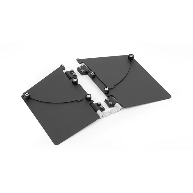 UMB-1 Universal Mattebox (Pro) is natively 15mm LW rod based and comes standard with two rotating 4x5.65 filter stages (with an optional third stage available), individual tray catchers, folding French flag, 143mm native diameter opening, NATO standard accessory rails on left, right, and top for attaching accessories, ARRI style rubber bellows with 114mm standard opening, a complete set of bellows reduction rings, a universal cloth donut for non-standard lens diameters, a height adjustable swing away bracket, left and right side flags, bottom flag, and a full set of clamp on adapter rings. The UMB-1 is designed to quickly transition from swing away, to clamp on, to ultralight when using a stabiliser.
