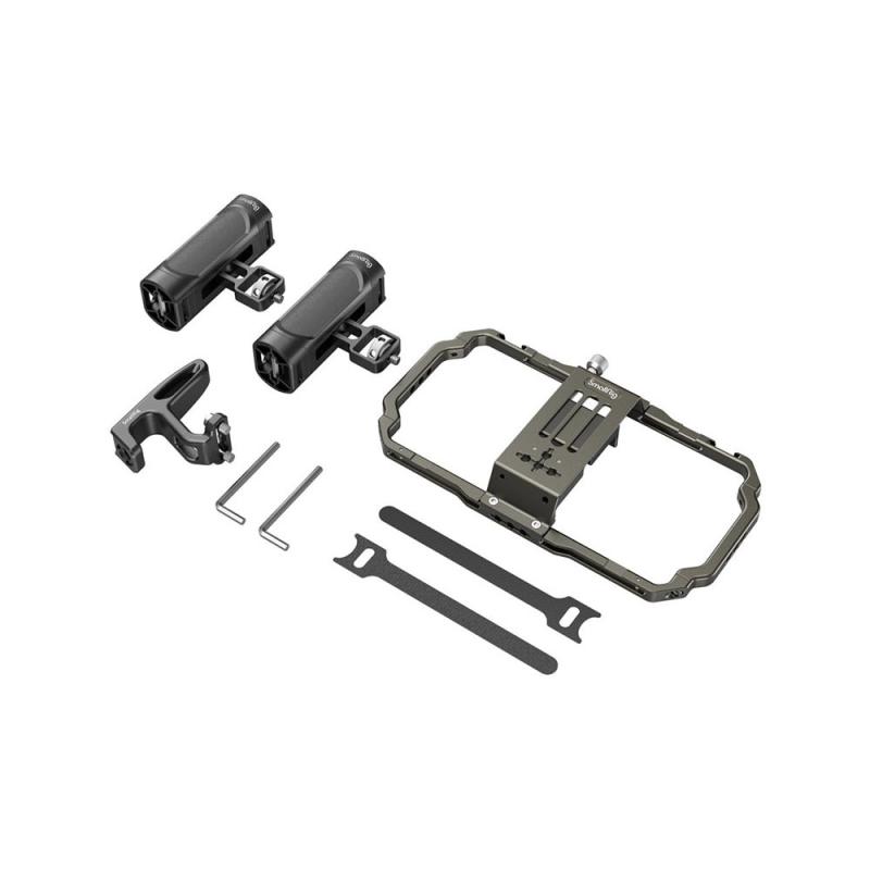 - The kit comes with two side handles and a top handle for a more stable handheld phone shooting.