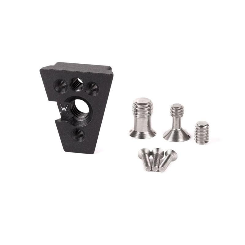 V-Lock Accessory Wedge is the dovetail portion of the V-Lock Base Station and Wedge Kit, based on the standard V-Lock or V-Dock as it is sometimes referred. The V-Lock Accessory Wedge portion of the kit can bolt into a 1/4-20 or 3/8-16 hole using the included screws and it is also threaded for 1/4-20 and 3/8-16 so accessories can screw into it. M3 hole pattern is also available for attaching to devices like the Preston MDR4 Mounting Plate and the Smartphone Clamp.