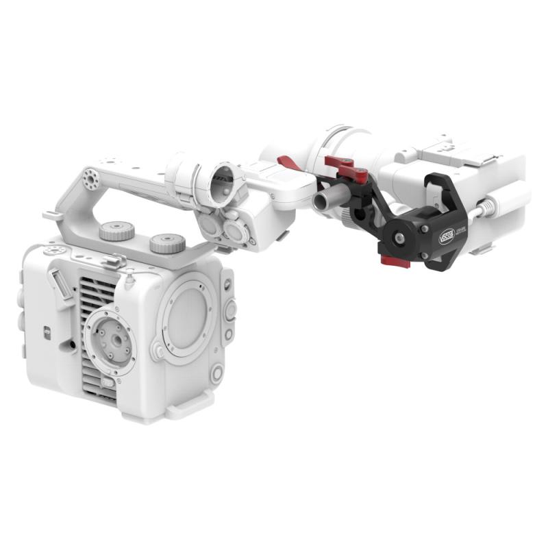 When the optional Sony eyepiece is used on the Sony FX6 LCD monitor, this bracket offers additional stability and a smooth adjustable friction needed to support the extra weight of the eyepiece.